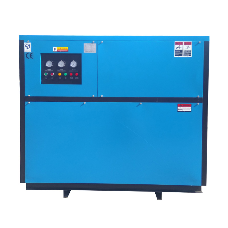 制冷系統(tǒng)的冷凝器采用冷卻水方式冷卻。主要用于供水條件較好、進(jìn)氣溫度較高及空氣處理亮較大的場合,因其受環(huán)境溫度因素影響小,所以出口空氣露點(diǎn)較穩(wěn)定,主要適合對用氣露點(diǎn)要求穩(wěn)定,環(huán)境溫度高的用戶。壓縮空氣進(jìn)入空氣預(yù)冷器預(yù)冷并除去部分水份,再進(jìn)入空氣冷卻器使溫度降至2℃(露點(diǎn)溫度),空氣中的水份在此溫度下析出,經(jīng)氣水分離器分離并由自動排水閥將水份排出,而干燥的低溫空氣則進(jìn)入空氣預(yù)冷器,再與未處理的壓縮空氣進(jìn)行熱交換升溫后輸出,即為處理后的干燥空氣。
