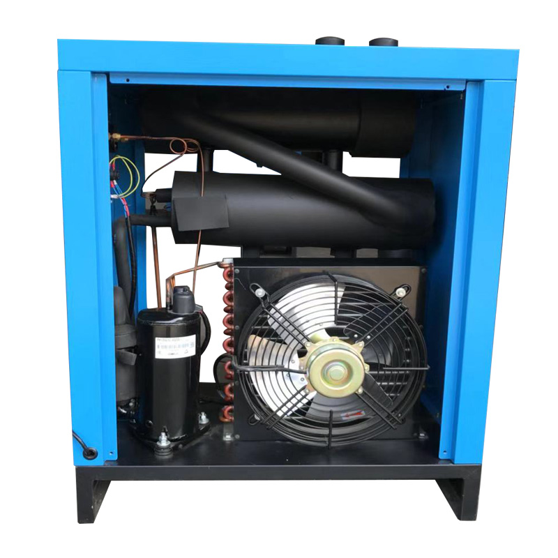 冷干機是冷凍式干燥機壓縮空氣是所有工業領域和技術生產過程中不可缺少的操作和加工動力。為防止生產過程中出現停工,壓縮空氣必須清潔、干燥且不含油。壓縮空氣是通過將大量的環境空氣增壓得到的。通常情況下,此類空氣中含有一些有害 物質,如臟的顆粒物質和水蒸氣形式存在的濕氣。形成有害的腐蝕性乳濁液,導致設備停止運行,造成不可避免的巨大損失。進入干燥機的壓縮空氣通過外流的冷壓縮空氣在“空氣-空氣”換熱器中預冷。然后,經過預冷的空氣流經“ 制冷劑-空氣”換熱器,進下一步冷卻至需要的露點溫度。壓縮空氣中的濕氣凝結成水滴,并被自動收集和排放。