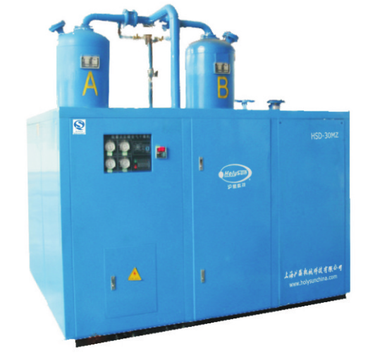 1、再生熱源(吸干機部分有微加熱的)采用電加熱,再生步驟采用加熱+吹冷。